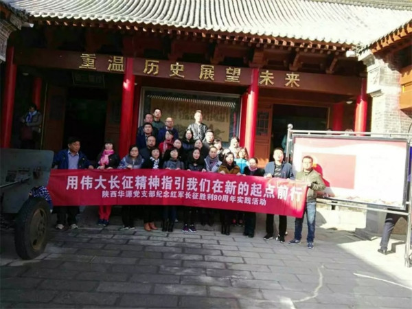 2016年11月5日,華源黨支部組織黨員及入黨積極分子開展“用偉大長征精神指引我們在新的起點前行—紀(jì)念紅軍長征勝利80周年主題實踐活動”,前往藍田葛牌紀(jì)念館參觀,對習(xí)主席在紀(jì)念紅軍長征80周年大會上發(fā)表的重要講話進行學(xué)習(xí),并組織黨員在紀(jì)念館前宣誓。(郭娜)