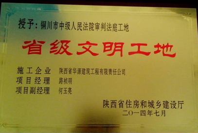 熱烈祝賀華源建筑公司銅川法院項(xiàng)目榮膺省級(jí)文明工地